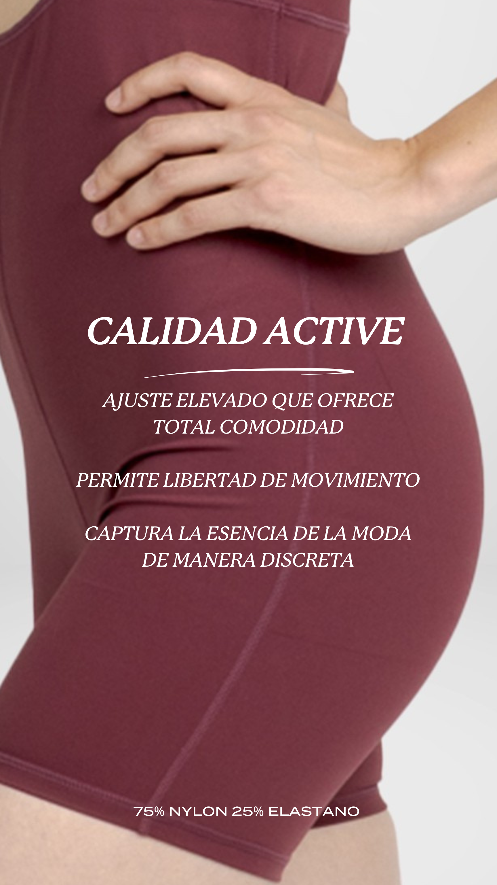 Si bien todos las telas son seleccionadas con la más alta tecnología, incluyendo el filtro de Squat Proof. En prendas de color Nude ó Blanco, se recomienda utilizar ropa ínterior adecuada, y en colores Nudes o que no contrasten con el color de la prenda.